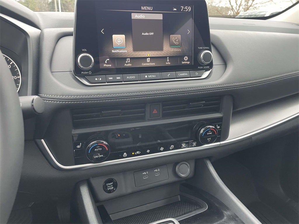 - Radio: AM/FM NissanConnect -inc: 6 speakers plus 2 tweeters, Apple CarPlay, Android Auto, 8" color touch screen display, Bluetooth®, 2 front USB type-C, Wi-Fi hotspot and NissanConnect Services powered by SiriusXM