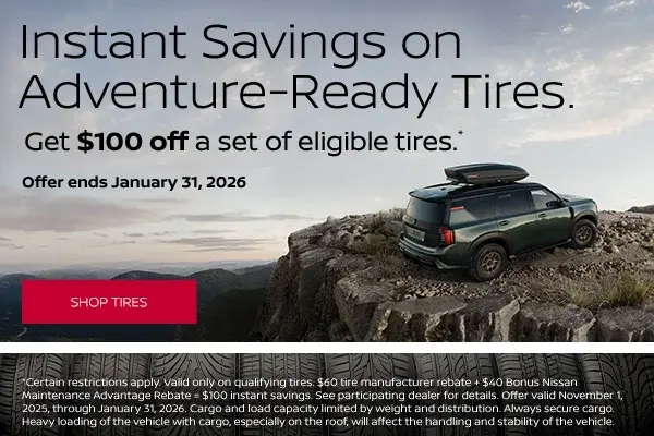 Your tires are the only part of your vehicle that touches the road, and they significantly affect handling, comfort, and safety. At Nissan of Cumming, getting the right tires should come with confidence and value. If you find an eligible tire price from a qualifying competitor, bring us the quote, and we will match it. To make the deal even better, we also offer an additional 5% credit on select eligible tires. This offer helps you enjoy competitive pricing without giving up the expertise, quality parts, and certified service that come with choosing a Nissan dealership. Our team is here to guide you to the right tires and keep them performing their best.