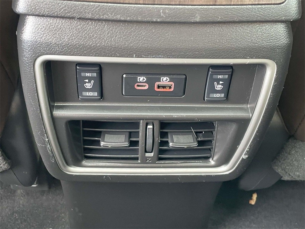 This vehicle comes equipped with Cargo Package (Cargo Area Protector, Cargo Net, First Aid Kit, and Retractable Cargo Cover), CVT with Xtronic, 11 Speakers, 4-Wheel Disc Brakes, ABS brakes, Auto High-beam Headlights, Automatic temperature control, Blind Spot Warning, Brake assist, Child-Seat-Sensing Airbag, Climate-Controlled Front Bucket Seats, Dual front impact airbags, Dual front side impact airbags, Emergency communication system: NissanConnect Services (first 6 months included), Exterior Parking Camera Rear, Front anti-roll bar, Front dual zone A/C, Front fog lights, Heated front seats, Heated rear seats, Heated steering wheel, Knee airbag, Low tire pressure warning, Navigation system: NissanConnect Navigation, NissanConnect featuring Apple CarPlay and Android Auto, NissanConnect Services Powered By SiriusXM, Occupant sensing airbag, Overhead airbag, Power Liftgate, Power moonroof, Rear anti-roll bar, Rear side impact airbag, Remote keyless entry, Semi-Aniline Leather-Appointed Seat Trim, Spoiler, Steering wheel memory, Steering wheel mounted audio controls, Ventilated front seats, Wheels: 20 Dark Hyper Silver, 4.667 Axle Ratio, Air Conditioning, Alloy wheels, AM/FM radio: SiriusXM, AM/FM/CD/MP3/WMA Audio System, Auto tilt-away steering wheel, Auto-dimming Rear-View mirror, Bumpers: body-color, Carpeted Floor Mats & Carpeted Cargo Mat, CD player, Compass, Delay-off headlights, Driver door bin, Driver vanity mirror, Electronic Stability Control, Four wheel independent suspension, Front Bucket Seats, Front Center Armrest, Front reading lights, Fully automatic headlights, Garage door transmitter: HomeLink, Heated door mirrors, Illuminated entry, Illuminated Kick Plates, Illuminated Kick Plates (PIO), Memory seat, Outside temperature display, Overhead console, Panic alarm, Passenger door bin, Passenger vanity mirror, Power door mirrors, Power driver seat, Power passenger seat, Power steering, Power windows, Radio data system, Rear Bumper Protector, Rear reading lights, Rear seat center armrest, Rear window defroster, Rear window wiper, Roof rack: rails only, Security system, Speed control, Speed-sensing steering, Speed-Sensitive Wipers, Splash Guards, Split folding rear seat, Tachometer, Telescoping steering wheel, Tilt steering wheel, Traction control, Trip computer, Turn signal indicator mirrors, and Variably intermittent wipers . Odometer is 21051 miles below market average! 20/28 City/Highway MPG